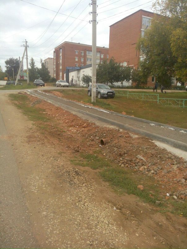 На улице 2-ой переулок Гагарина делается тротуар. Пешеходы ждут завершения работ с нетерпением.