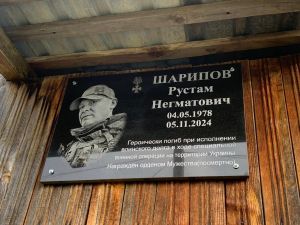 Махсус хәрби операция зонасында батырларча һәлак булган улы Рөстәм Нигъмәт улы хөрмәтенә урын алган истәлек тактасы ул